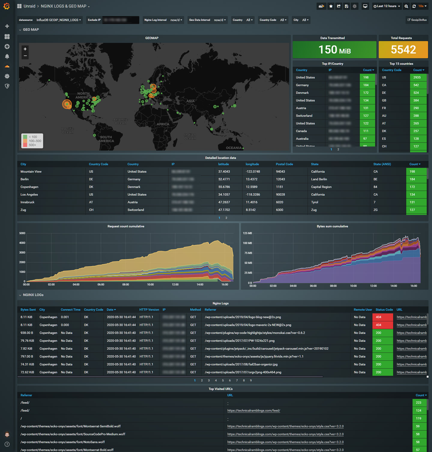 A python script that will parse the nginx access.log and send geolocation metrics and log metrics to InfluxDB
