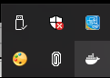 重新開機後,你就會發現可愛的 Docker 在右下角蹦出來惹