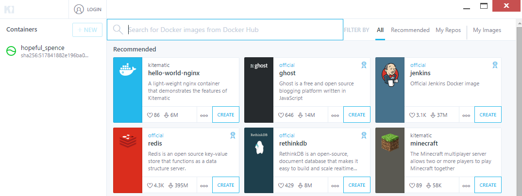裝完了之後,建議大家再多裝一個 Kitematic,他是 GUI 介面的,方便你使用 Docker,